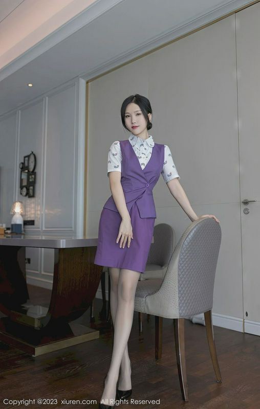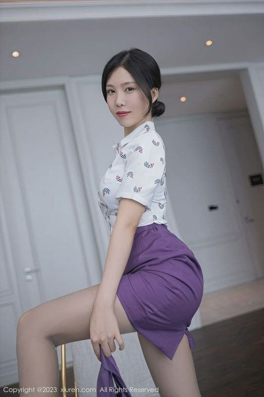 美女模特抖娘利世空姐制服搭配紫色短裙